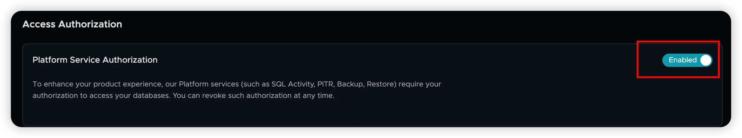 Token creation requires platform service permissions. Enable Platform Service Authorization under Security → Access Authorization.