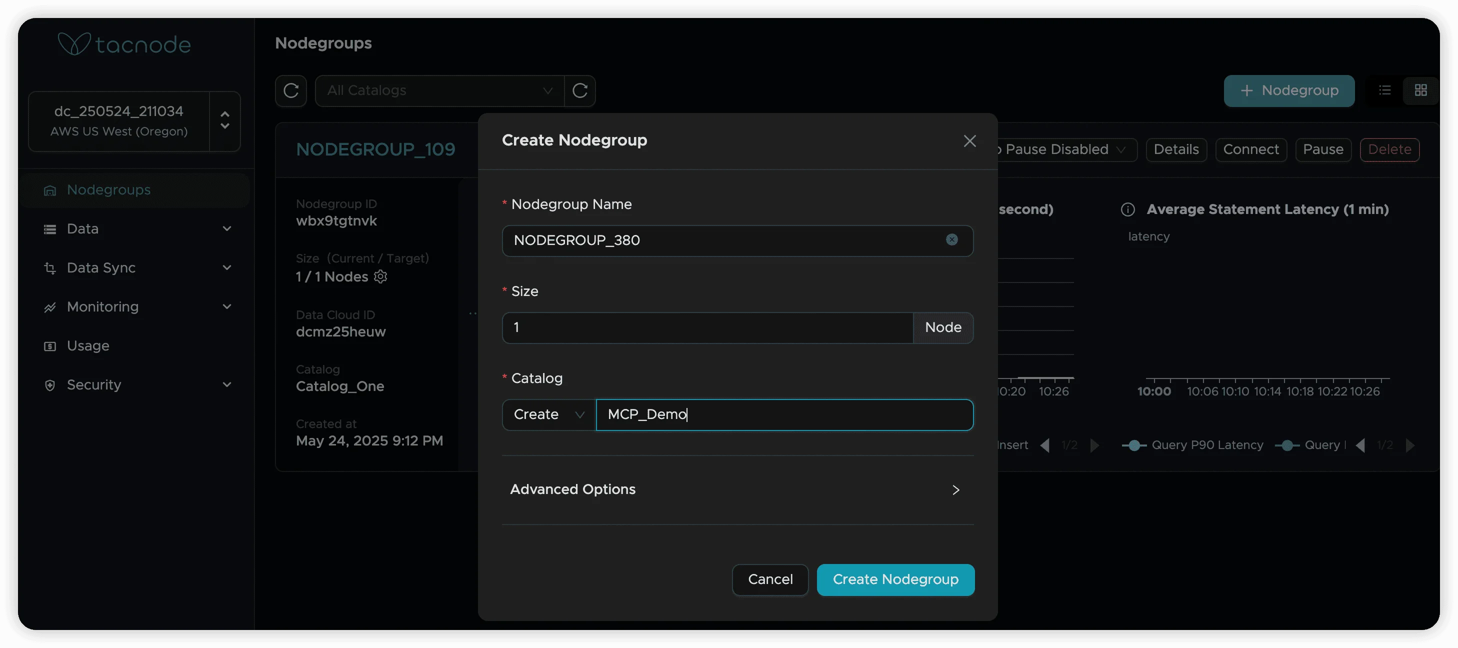- Navigate to your desired Nodegroup for SQL execution