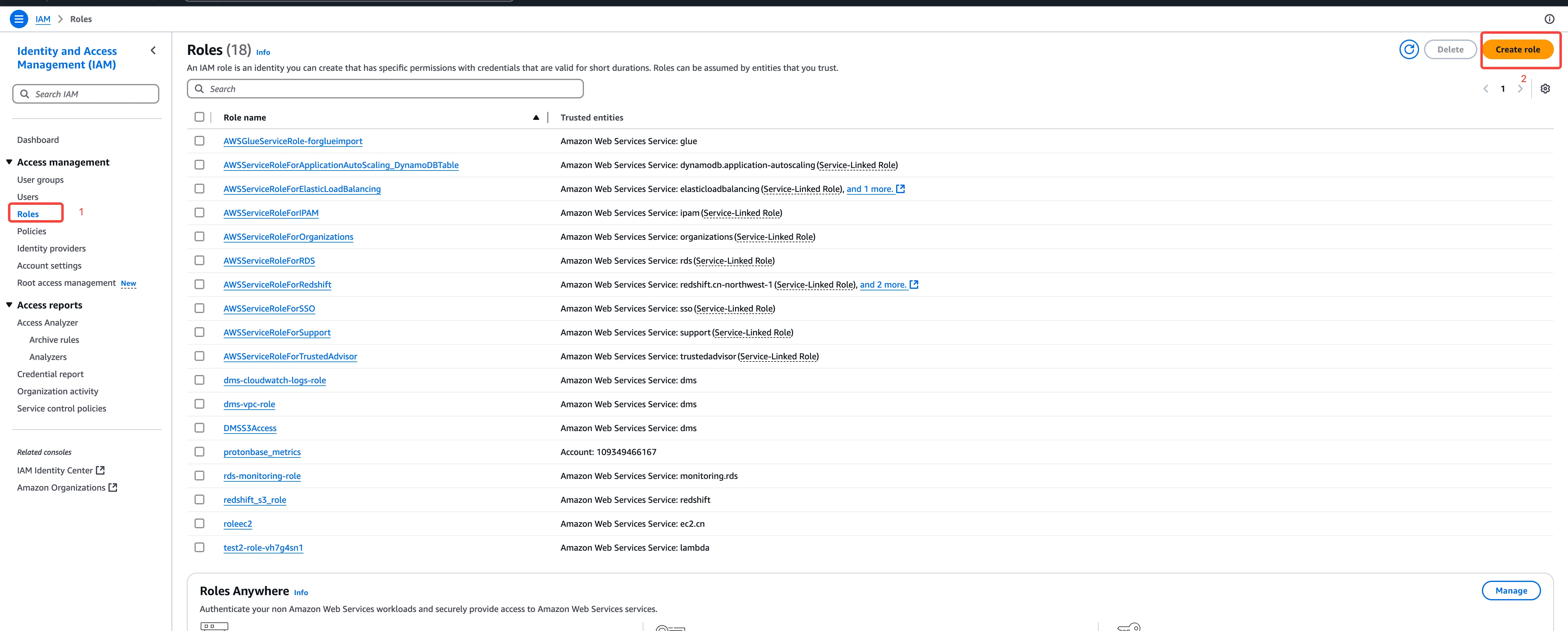 Set up an IAM role that Tacnode can assume to push metrics to CloudWatch.