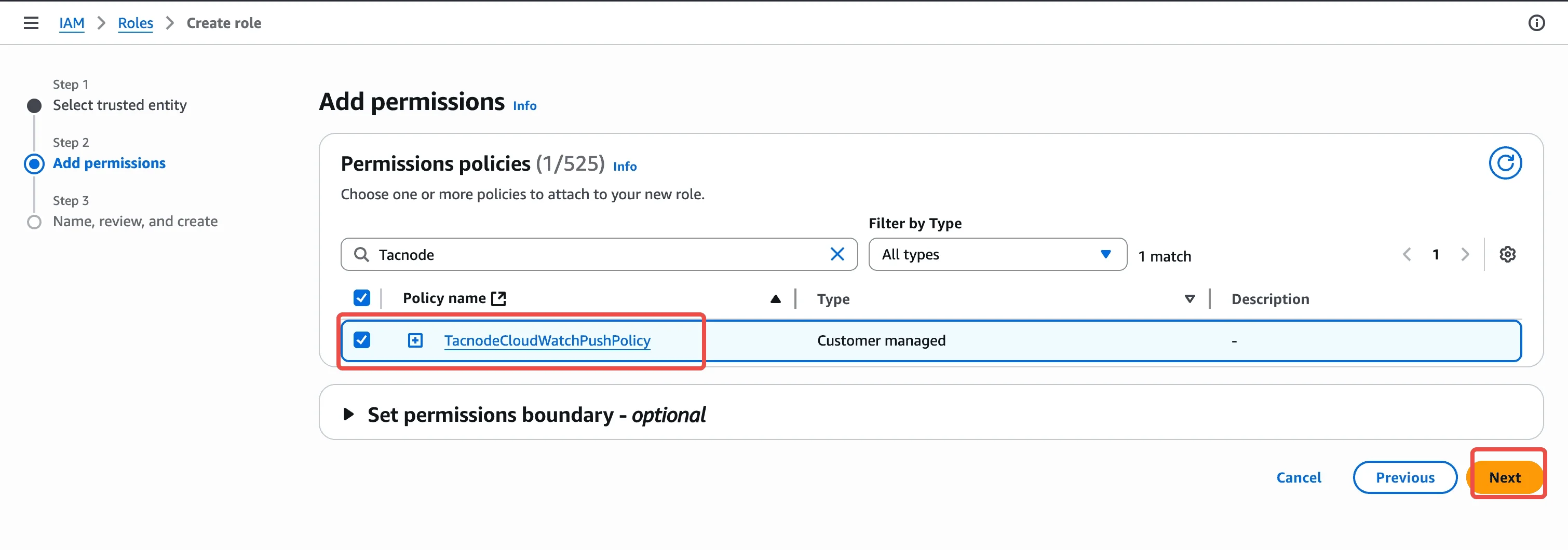 TacnodeCloudWatchPushPolicy - Click “Next” to continue