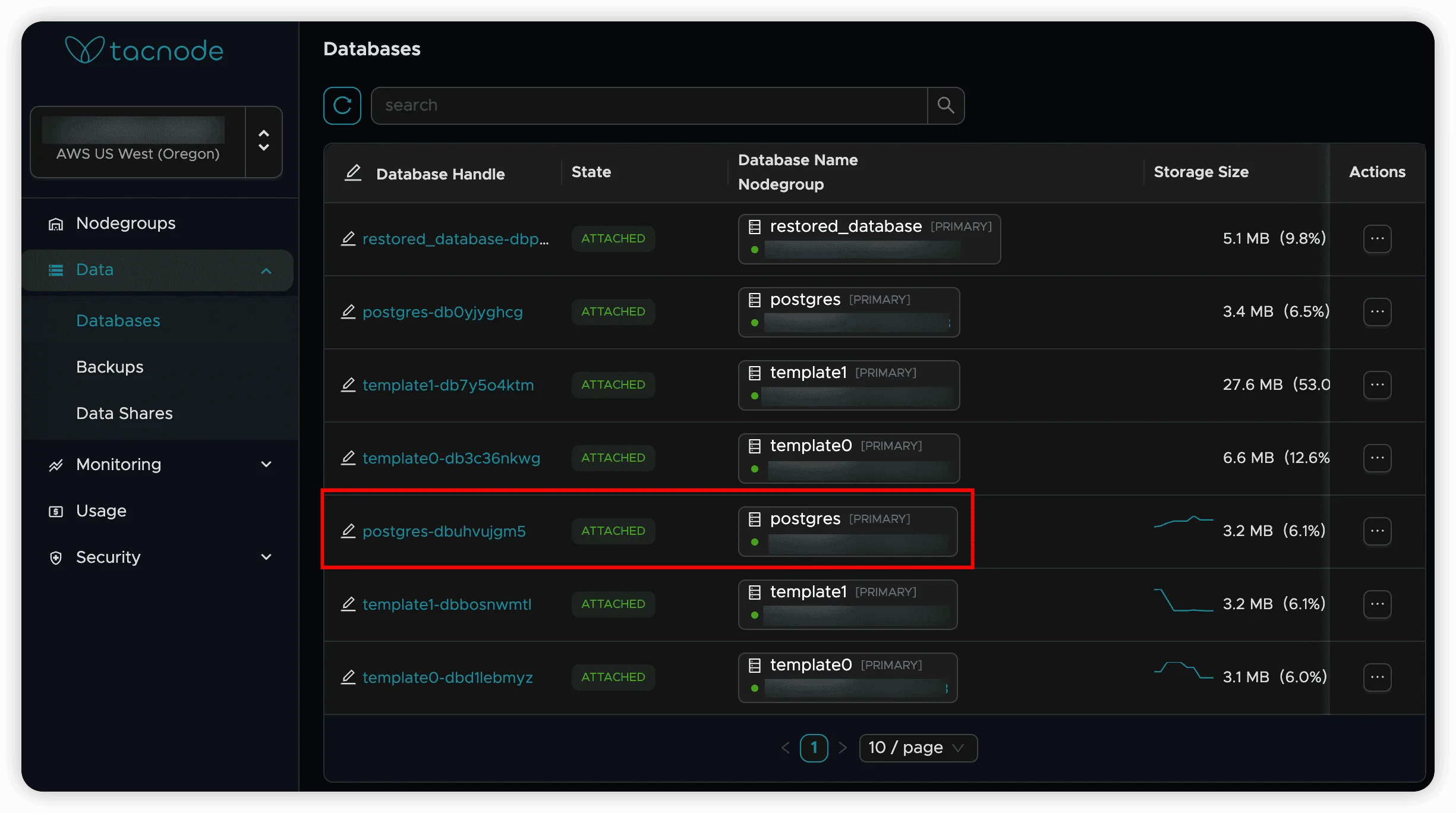 - Database is automatically attached to the target nodegroup