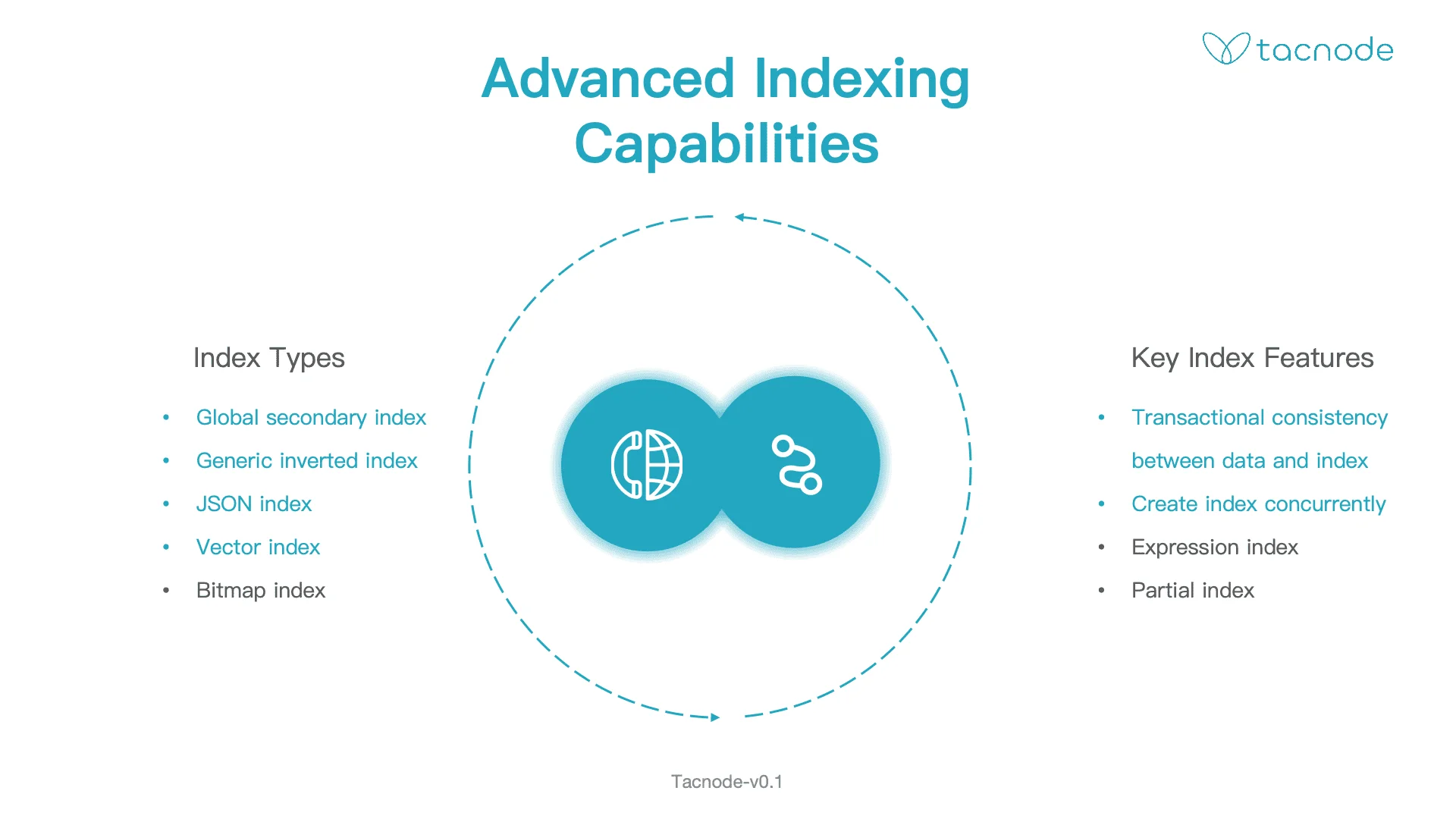 Tacnode offers comprehensive indexes to enhance query efficiency.