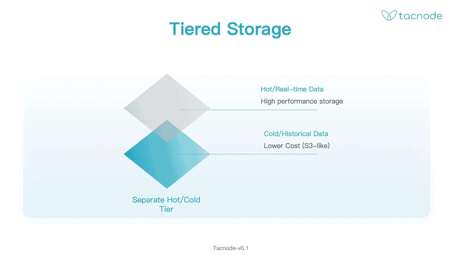 Tiered storage is designed for this situation. Tacnode uses tiered storage to keep hot, real-time data in high-performance solutions like EBS, while cost-effective S3 is used for cold historical data. This tiered storage feature allows the system to manage real-time and historical data cost-effectively and efficiently.