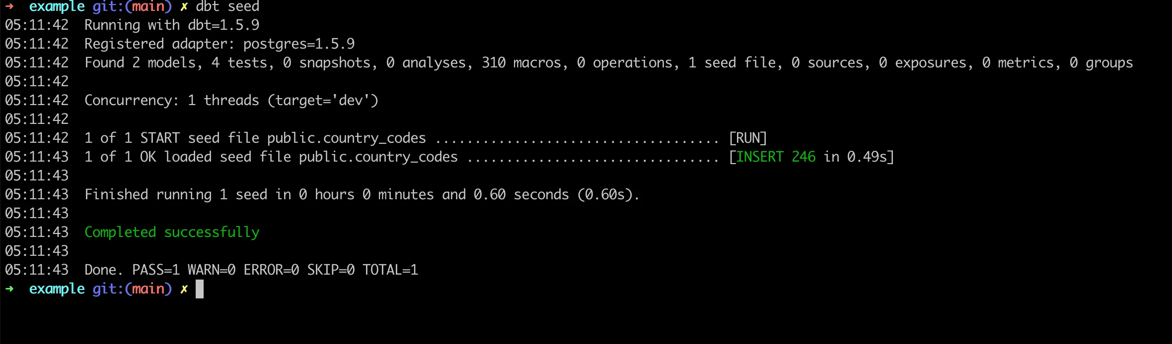 Seeds enable you to load CSV files as reference tables. Create seed files in the seeds/ directory.
