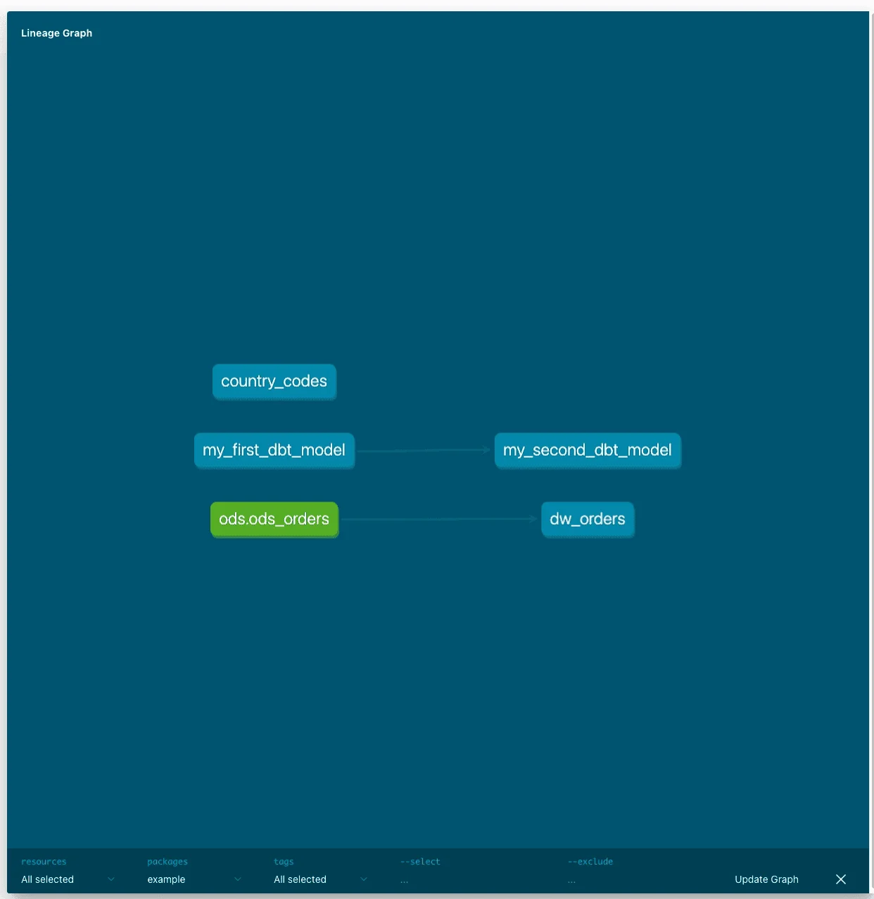 source()- Establishes lineage between models and source tablesSELECT * FROM {{ source('public', 'orders') }};ref()- Creates dependencies between models for proper execution orderSELECT * FROM {{ ref('staging_orders') }};