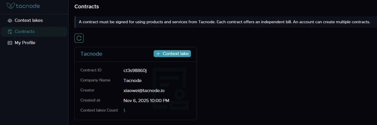 - Access the creation interface from either the contract page or the “Context Lakes” page