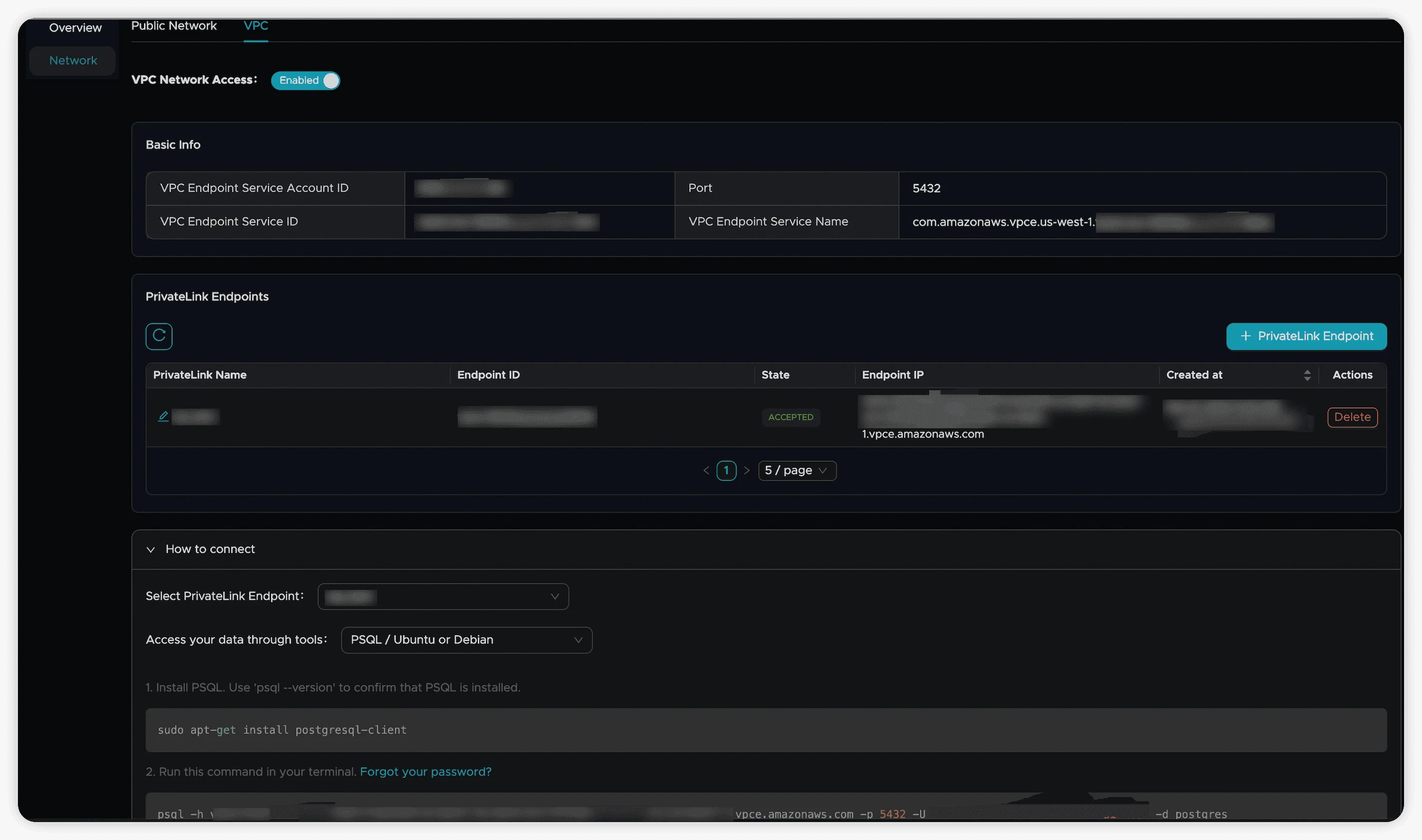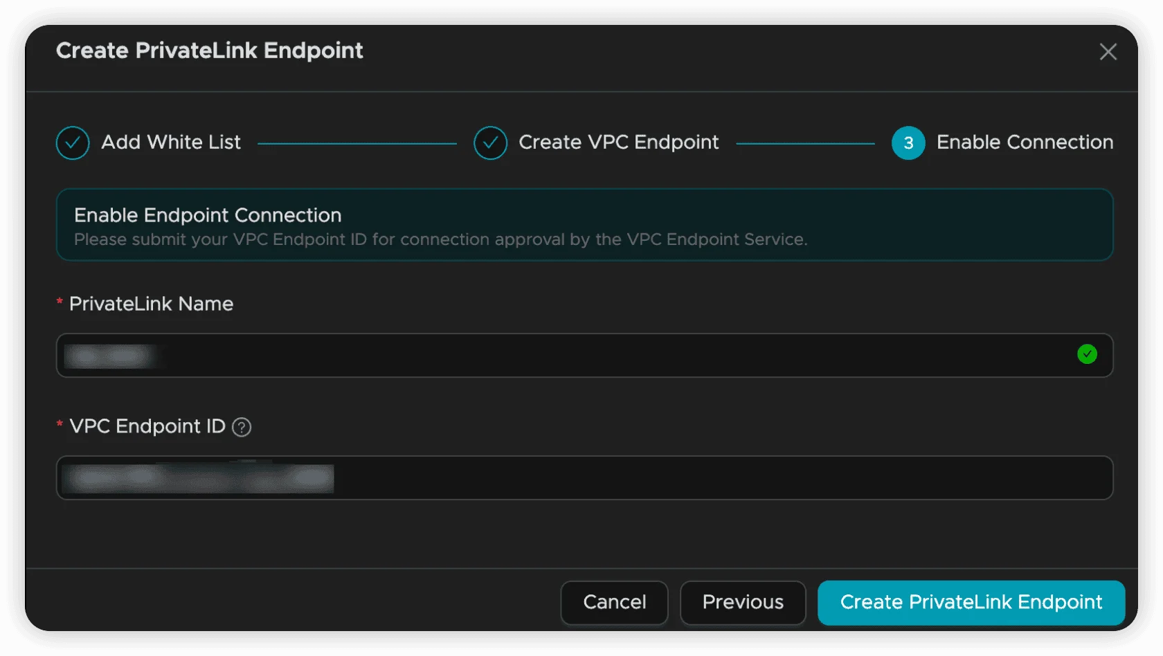 VPC Connections: After successful endpoint approval, the system automatically retrieves the endpoint IP address for convenient connectivity.